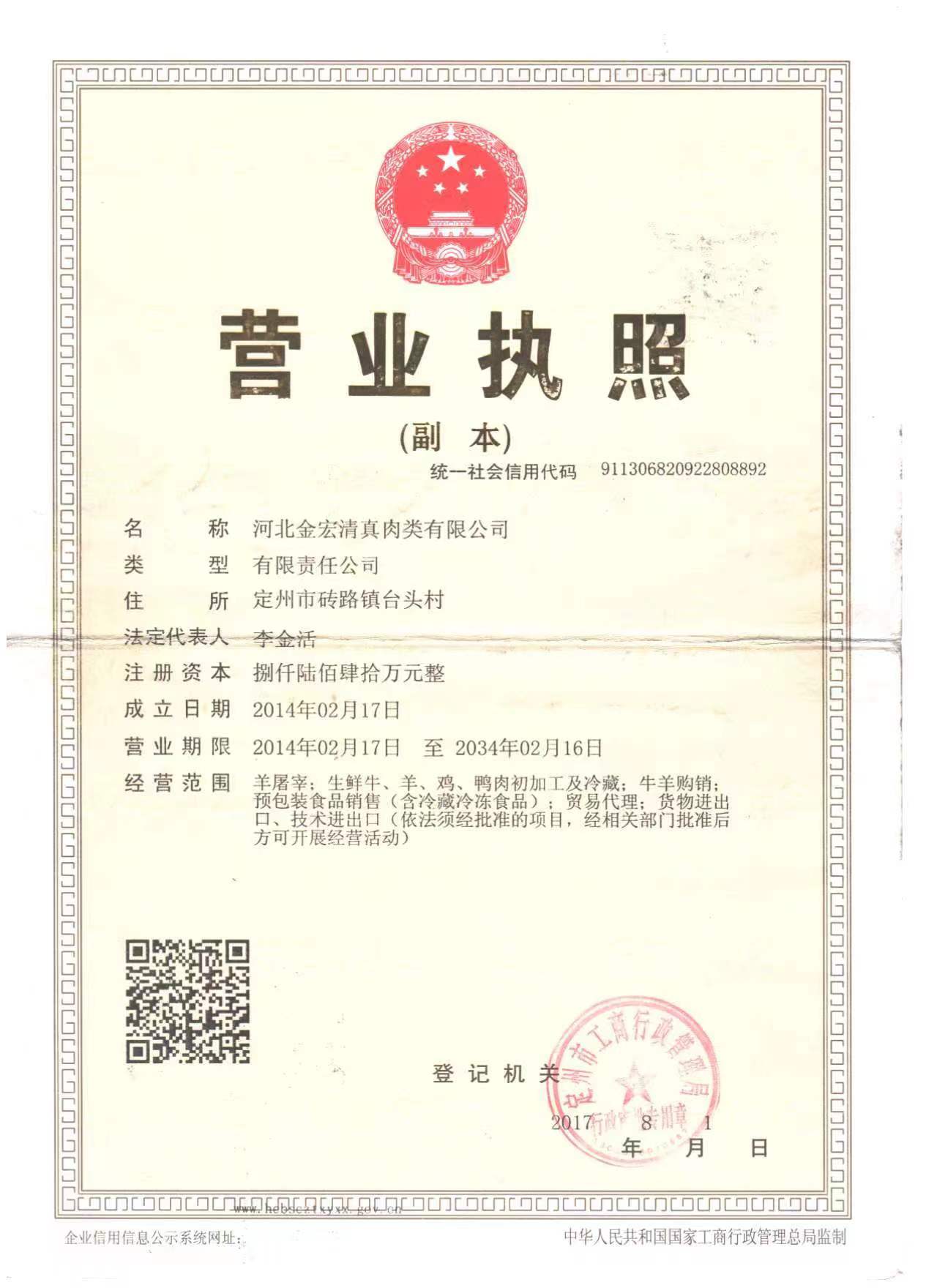 河北金宏清真肉类有限公司